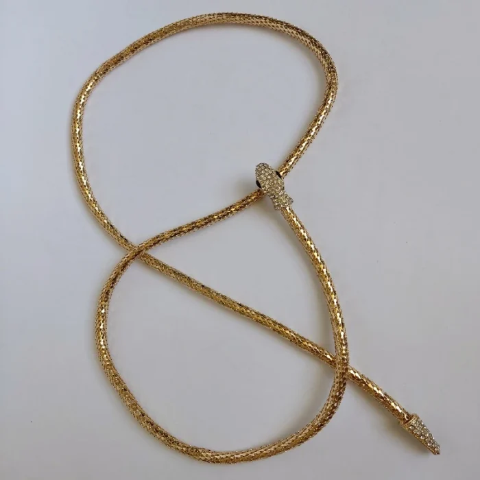 گردنبند ماری بلند با فرم ظریف و بافت خاصش، به راحتی نگاهها رو به سمت خودش میکشه.